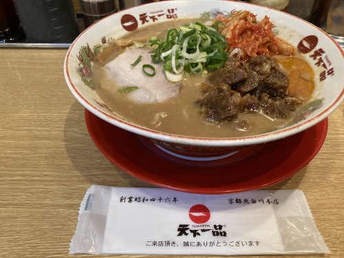 久しぶりの天下一品総本店。昼休み前だったのが良かったか待たずに入る事が出来た。ここ巨大チェーンの総本山の割には至って普通。