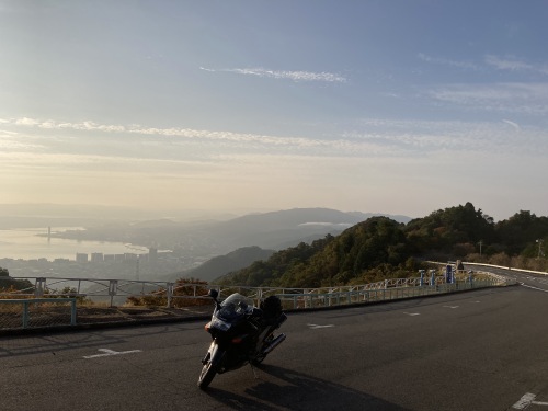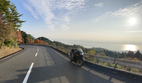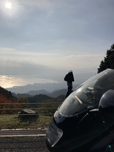 初めて走る比叡山ドライブウェイ。夢見が丘展望台の景色が抜群。琵琶湖〜大津〜湖西の街並みが一望。結構な傾斜なのでZX-11の駐車には神経を使ったが、いきなり良い景色を観る事が出来た。