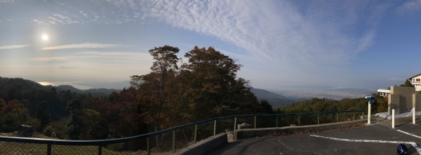 先に比叡山山頂駐車場に登る。標高800mにたいして期待していなかったけれど、なんの。結構な展望が開けている。