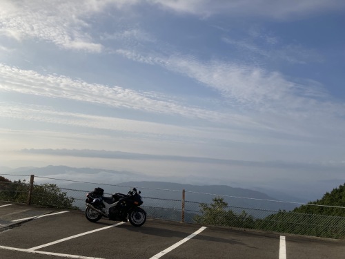 それにしても・・・人が全くいない。これだけ広い駐車場にZX-11が1台で独占。ケーブルも動いていないし、山頂ガーデンもしまっているが、この景色を独占出来るだけでも価値があると思うのだが。