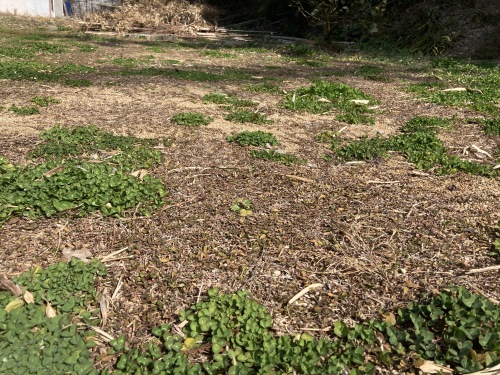 クラピアが休眠状態の間にクローバーが着実に勢力を拡大。このまま夏に突入した時にどちらが雌雄を決するのか見ものだ。