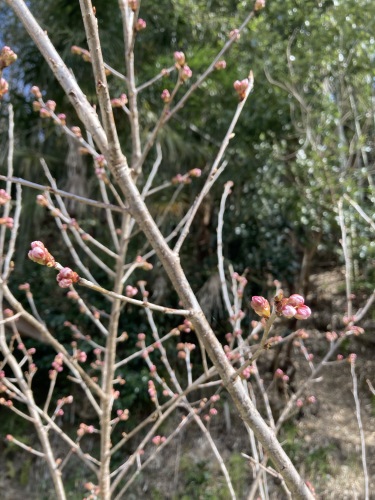 梅以外にも桜が大きく蕾を蓄えていた。まだ朝晩肌寒いが春がもう少しのところまで来ているのを実感。