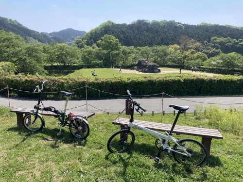早速に折り畳みをセットして明日香村中心部に漕ぎ出す。高松塚の横を抜けて気が付いたら散策コースを走っていた。明日香村に長年来ているが、この散策コースをなぜか意識した事が無かった。車の心配をせずに高松塚〜鬼の雪隠〜亀石〜明日香宮〜橘寺を経由する。ミニベロでコキコキ走るにはうってつけのコース。