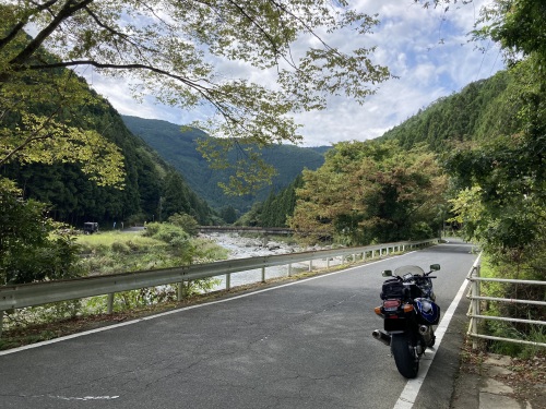 道の駅「飯高駅」8時50分着。9時開店で売店を物色、昼飯に見慣れない「でんがら」とかいう食べ物を土産に購入。166号はひたすら快走路、どこまでもアクセルを開けたくなるのをグッと堪えて西に進む。東吉野村で県道16号に折れる。