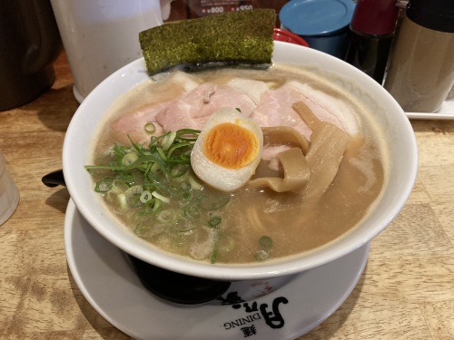 異様に食べログ評価が高いラーメン。後から確認してみたら何と何と和歌山県で今現在ランキング1位だった。食べたのは濃厚ラーメン。麺は意外や太麺。スープは期待通り濃厚、若干天下一品に雰囲気似ているか。チャーシューはちょっと私好みとは路線違ったかな。総じて期待通りに美味しくてコスパも良し。有名店にありがちな塩対応も皆無の雰囲気良いお店。次は一番人気のとんこつしょうゆを食べてみよう。