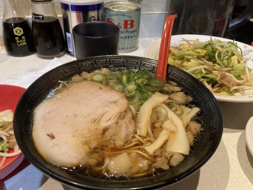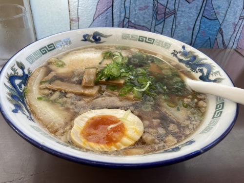 背油が尾道ラーメンの特徴。美味しかったけれど、シャーミンさんと私の一致した意見としては再訪するならば昨夜の「東珍康」。