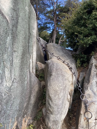 寺の境内に何故か!?石鎚山が再現されていて、鎖場まであったりする。大学が愛媛出身の私は勿論本家を知っているので、「どうせ東京の富士塚みたいなもんでしょ」と甘く思っていたのだが・・・