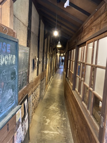 思い掛けず念願かなった後は商店街を駅の方向にブラブラ歩く。途中こんな場所も見つけた。そのまま映画ロケで使えそうな味がある。狭い通路を歩いていくと喫茶店があったりして、一番奥に小さな民泊があった。駅まで行って折り返して、途中潮に流されながら上手に往復する渡しをボーっと眺めたりしながら、普通に1時間程散歩。