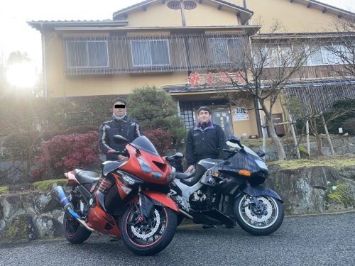 そんな事やら、バイクの話やら、勿論九州と大阪のRYUBEの話もしたり。していたら突然シャーミンさんが姫さんに電話を掛け始めた!「えっ!こんな時間にいくら仲間とは言え女性にお電話して大丈夫!?」。それは事前に今日一緒に走る事を姫さんにお伝えくれていて、打合済のサプライズだった。それで安心したけれど、久しぶりに姫さんとお話出来て嬉しかった!御一緒したのは2018年の都井岬以来だからもう5年以上経ってる。お忙しくてあまりバイクには乗れていないようだが、お元気そうで何よりであった。長年の同志として、また一緒に走りたい。