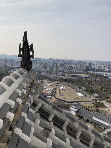 天守台から姫路市街が一望できる。市内にそれ程高いビルが無いので、尚更姫路城の存在感が際立つ。場内ではマラソン大会のゴールが設営されていて、丁度ゴール場面に遭遇する事が出来た。