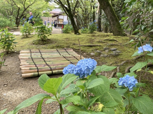 御朱印帳の受付手前の紫陽花。さり気ないところまで京都らしい行き届いた環境。博物館の鳳翔館は御本尊様や初代(平安時代からの)鳳凰が展示してあって、国宝、文化財が所狭しと並んでいた。広くはないが見応えあり。