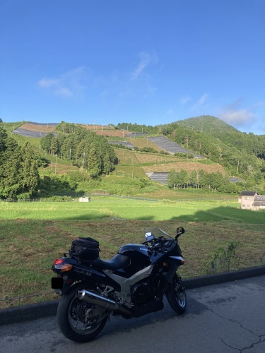 一つ目の峠を越えたら景色が一変。のどかなお茶の里の景色が突然現れた。この時だけ青空が広がる。思わずZX-11を停めて暫し小休止。残念ながら宇治木屋線は落石通行止に合い、県道5号から木津川に戻り、川沿いの国道24号を北上。日中は交通量多いだろうが7時過ぎの為、流れが異様に早い。景色も大阪とは少し感じが異なる。8時過ぎ宇治到着。