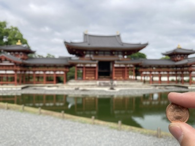 一通り記念撮影をした後、じっくり鳳凰堂を眺めてみる。時の権力者が造らせた極楽浄土を体現した、今風で言えばテーマパーク。左右対称のデザインが個人的な好みだし、木造でこれだけ精巧な建物を建てる昔の大工技術は大したものだ。