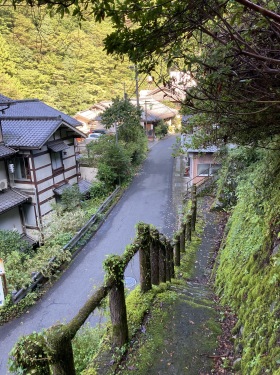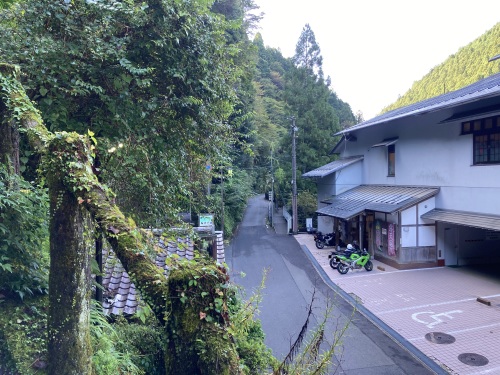 スカイタワーから龍神に向けて高度を下げると路面も乾いた。低速(2速)でメリハリをつけて走る事で急勾配の下りでもワインディングを楽しめた。下りの2CTもすこぶる良好。7時50分龍神温泉元湯到着。