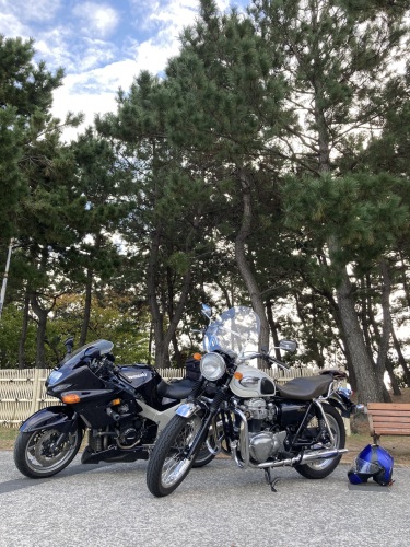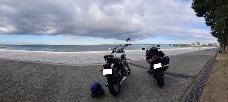 Versysが来なかったので拍子抜けしたが、W650もなかなか良いバイクではないか。特にエンジンの造形が抜群。キックスターターまでついている。試しにエンジン掛けさせて貰った、650なので掛かるか心配したが無事掛かった。バイクらしいバイクやなあ。その後は珈琲飲みながら、いてやのパン。万人受けする感じでは無いが、オリジナリティ溢れていてポテトチーズはホクホク美味しかった。パンを頬張り、暫くぶりの近況をお互い話しながら・・・関空を眺める。