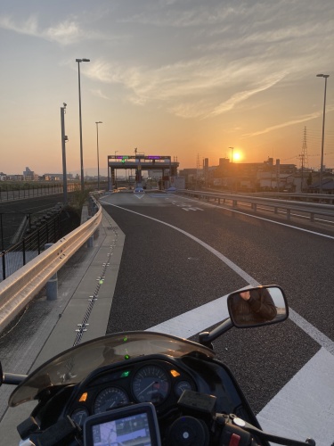 5時過ぎ出発。常磐ICに乗る前に丁度朝日が出てきた。阪神高速大和川線〜西名阪自動車道〜名阪国道を経由。