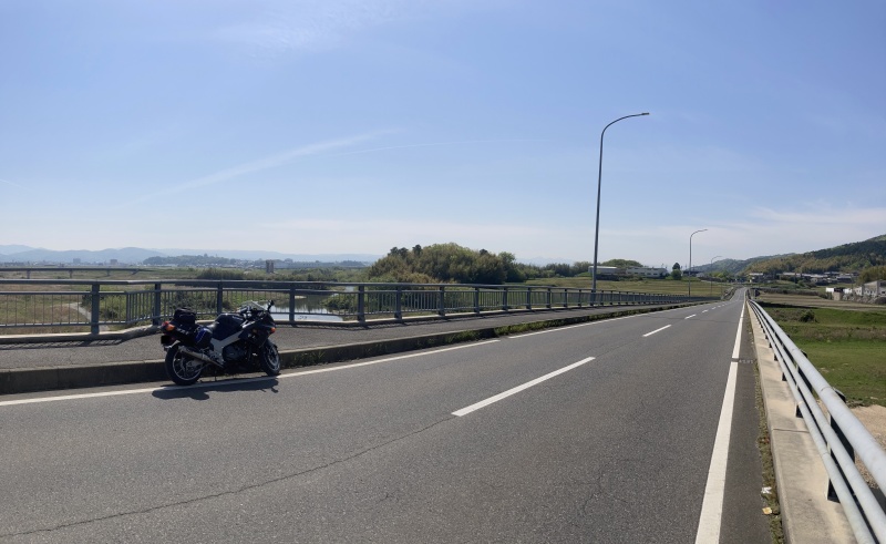 最北端周辺は山間部となり見通し悪く、道が一層判り難い。ナビをセットしていても何度かコースをそれてしまうのを都度修正しながら走る。平野部に戻った辺りで視界が開けた。高倉大橋から伊賀上野城が遠く観える。