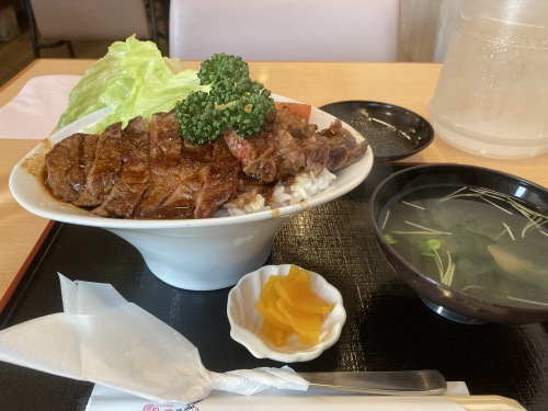 通常サイズのステーキ丼。¥1,200-程でこのボリューム、味も美味しかった。