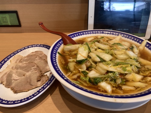 彩華ラーメン大盛 + チャーシューを頼む。さすが本店、注文後5分で想定以上の凄い量で出てきた。白菜山盛り、ニンニクがガンガン効いたスープ。麺とチャーシューは普通かな。美味しい!量が多い!ニンニク相当効いている!東京九段下で食べた二郎ラーメンを思い出した。なんとか完食したけれど、今度は普通盛りで充分かな。