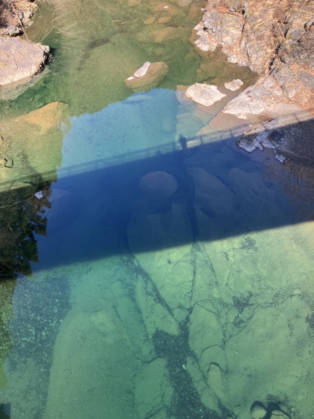 「すずかけの道」県道53号線沿いでいつも小休止する橋。天ノ川に朝日が照らされて川底まで綺麗に観える。「いつもよりも綺麗に観えるのは何故?」と不思議に思ったが9時40分の時計を確認して納得。普段であれば少なくとも3時間前にはここに到着しているので太陽の角度が違う。この日は20℃以上予報も朝の水越峠は一桁前半。出発は完全に日が昇った7時40分。先週もそうだが、普段と違った行動をすると見慣れた景色にも新しい発見がある。