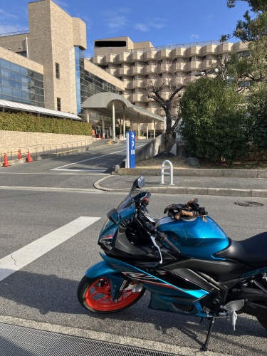 代車なのでナビがないのだが、スマホのYahooナビをポケットに入れて、音声だけで難なく病院到着。Ripさんが今週入院されたとお聞きして、どしてもお見舞いをさせて欲しいとお願いして御了承頂いた。大きくてリゾートマンションのようなお洒落な外観。休日は裏口から入り、バイクは無料で駐車できる(車は駐車場待ちが数台あった)。