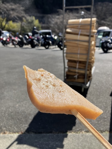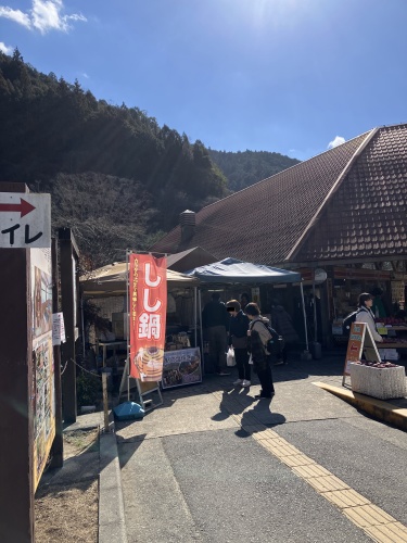 しし鍋で温まった後は「よもぎの里」。こちらの店はこんにゃくが有名、わざわざこれを店目当てに車やバイクがやってくる。「値上げしてごめんね〜」とこちらも顔なじみのおばちゃん達に謝られながら